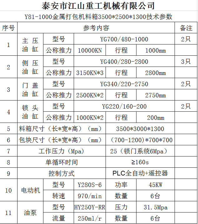 山东江山重工1000吨金属打包机
